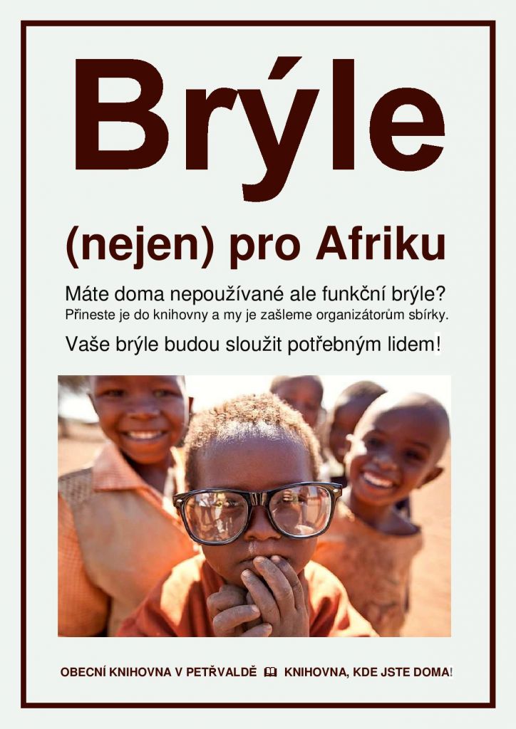 Knihovna se opět zapojuje do sbírky brýlí. Pokud máte doma nepoužívané ale funkční brýle - přineste je do knihovny a my je zašleme organizátorům sbírky. Prosím, noste jen brýle, které jsou kompletní a čisté.