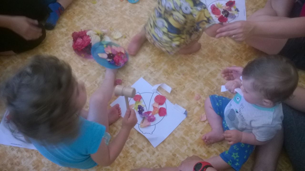 Program jsme zahájili pohádkou O nenasytné housence, která určila téma celého setkání. Děti "krmily" housenku (házely míčky do otvorů v krabici), lepily míčky na "pavučinu" z lepicí pásky, vyzkoušely si také hmyzí skládačky, kde musely najít a správně přiřadit chybějící část obrázku. Velký úspěch mělo modelování z doma připravené modelovací hmoty a různých přírodnin (kamínky, šišky) a také zdobení šablony berušky živými květy. Součástí modelování byla výroba "sopky", která po nalití octa s jarem na kypřicí prášek opravdu soptila.